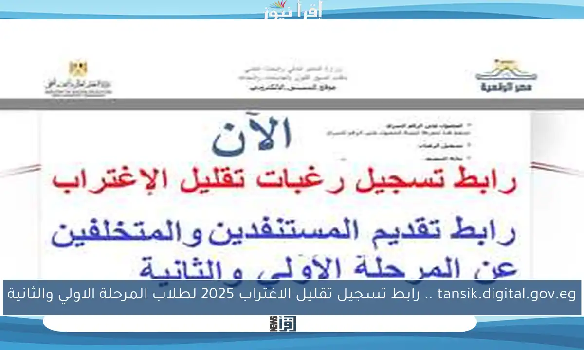 • tansik.digital.gov.eg .. رابط تسجيل تقليل الاغتراب 2025 لطلاب المرحلة الاولي والثانية