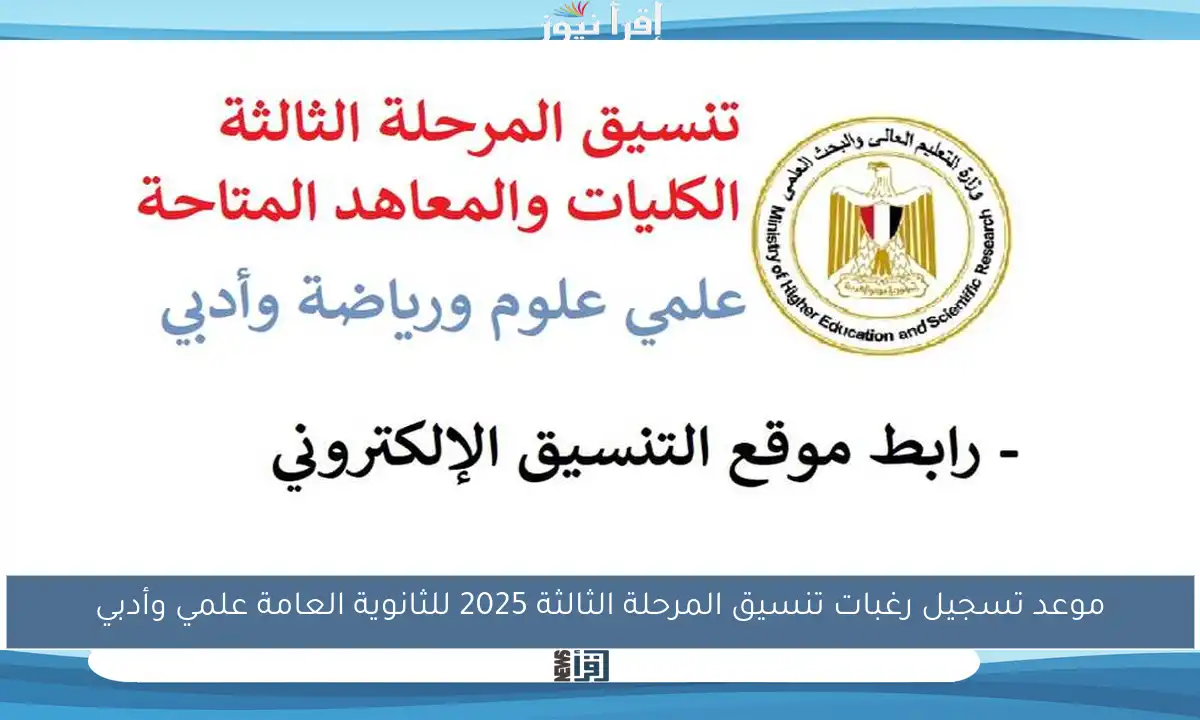 • موعد تسجيل رغبات تنسيق المرحلة الثالثة 2025 للثانوية العامة علمي وأدبي